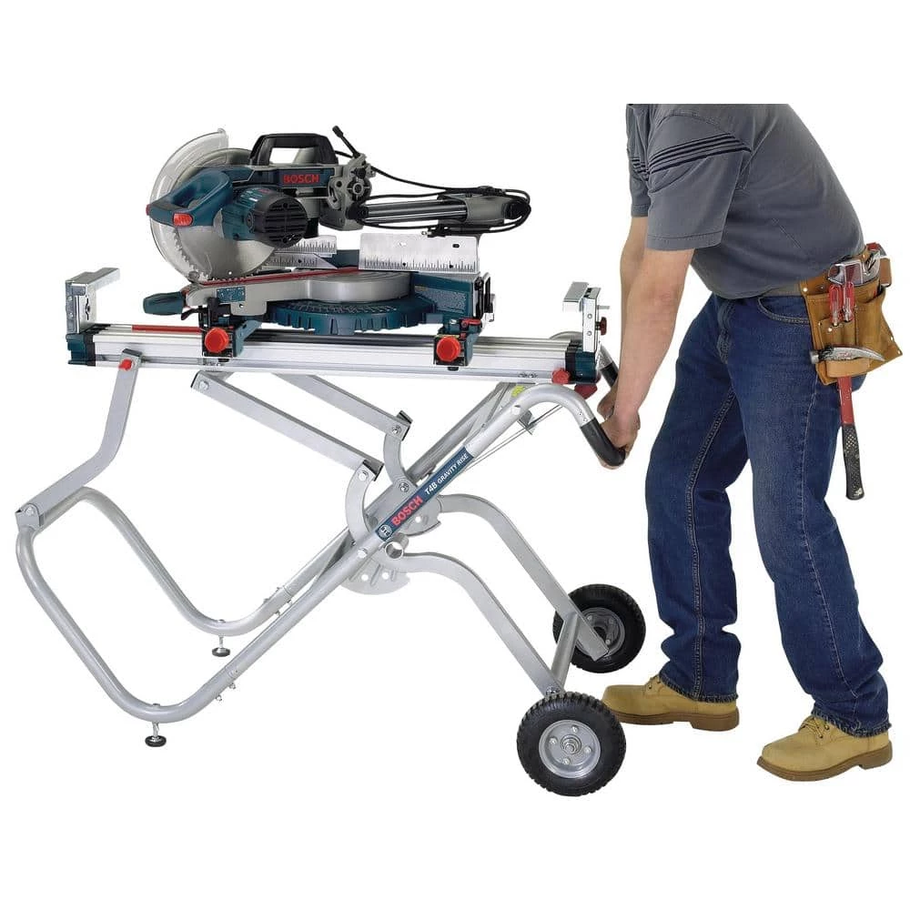 - Integrated rubber wheels – easily move stand with saw attached from jobsite to jobsite