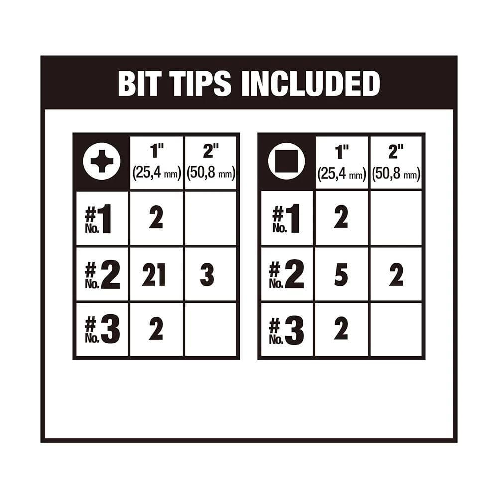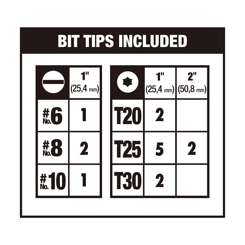 - Precision-machined bit tips allow snug fit inside screw head recesses for controlled fastening