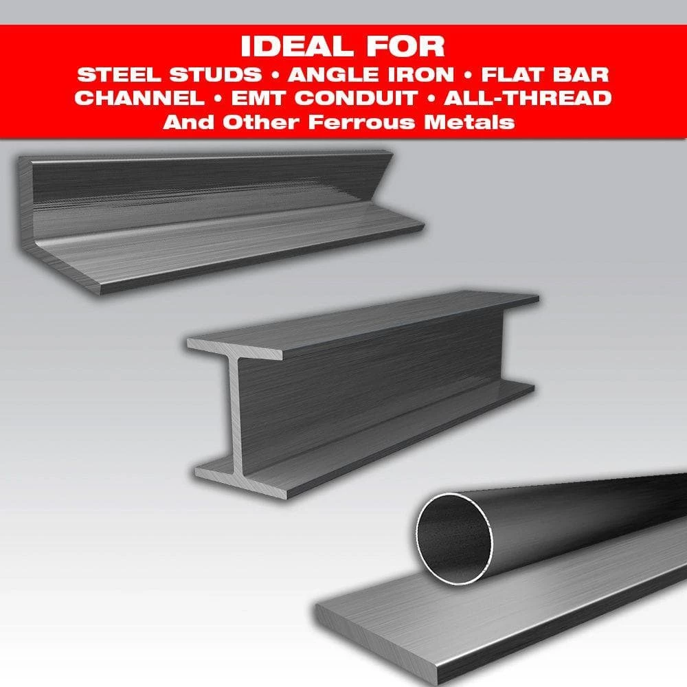 - Ideal for use when cutting ferrous metals, such as: steel studs, angle iron, flat bar