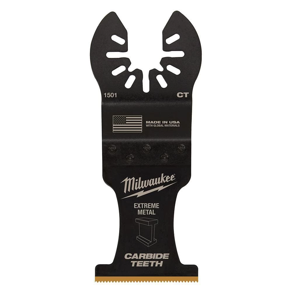 The MILWAUKEE Universal Fit OPEN-LOK 1-3/8 in. Titanium Enhanced Carbide Teeth Blade 2 Pack for Oscillating Multi-Tools is designed for extreme metal cutting in screws, bolts, metal pipe, nails, and more. The 1-3/8 in. Titanium Enhanced Carbide Teeth Metal Blade lasts up to 50X longer than standard bi-metal blades and can be used in a wide range of materials for the longest blade life. This Milwaukee carbide teeth blade is designed with global materials.