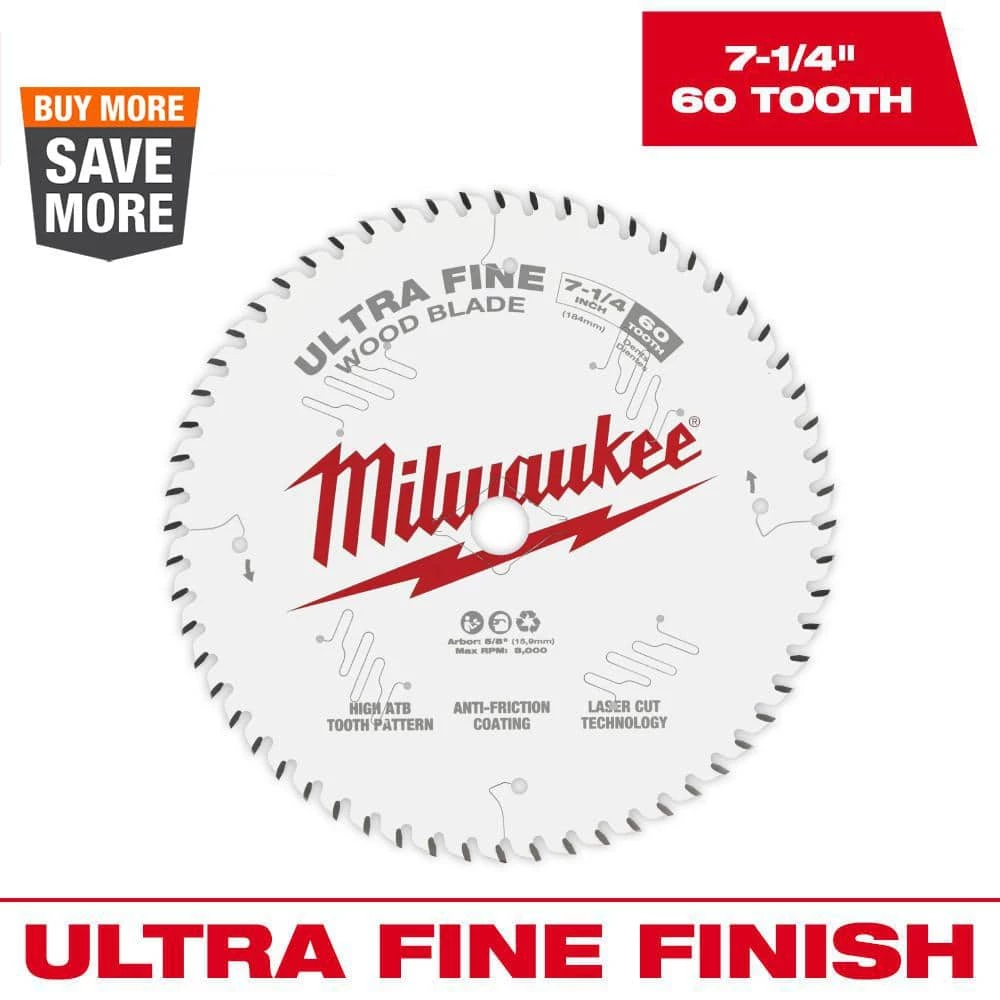 Milwaukee’s wood cutting, ultra-fine finish blades provide a smooth finish and cutting efficiencies to improve your productivity. A High-ATB tooth pattern provides a superior finish with minimal tearout in the cut material. An anti-friction coating keeps the blade cool while cutting and resists corrosion and gumming. Laser cutting technology creates the blade from 100% sheet steel to ensure a stable blade that increases cutting accuracy. Laser cut vibration slots minimize wobble and warping during use. A thin kerf design delivers faster cuts as well as more cuts per charge when using a cordless tool.