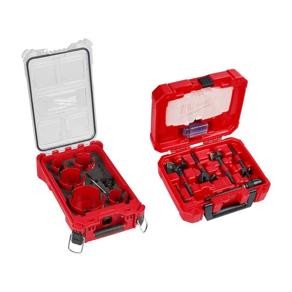 The Milwaukee BIG HAWG Carbide Hole Saw Kit with PACKOUT Case is the best solution for nail-embedded wood and abrasive material applications. This hole saw kit offers extreme life utilizing advanced carbide technology. The BIG HAWG gives users 50X more life in demanding applications with the ability to cut 1000+ more nails. The heavy-duty hole saw has 10X larger carbide teeth that rip through materials 5 times faster. Deeper slots allow for fast and easy plug removal. The BIG HAWG hole saw is the best solution for cutting through the toughest materials, including nails, cement board, shingles, plaster and stucco. The 5-Piece SwitchBlade Bit Plumber’s Kit offers a convenient assortment of the commonly used on the jobsite. These bits drill up to 12% faster and deliver up to 2X longer life. Designed for any trade that demands repetitive cutting of large holes in wood, SwitchBlade bits allow you to remove and replace blades rather than resharpen. You get a new bit with every quick, convenient change of the hardened steel blade and less downtime on the job. An aggressive feed screw design enables the bit to pull through quickly for faster drilling. Built to last and designed to perform, Milwaukee SwitchBlade Selfeed bits deliver more holes for the money.