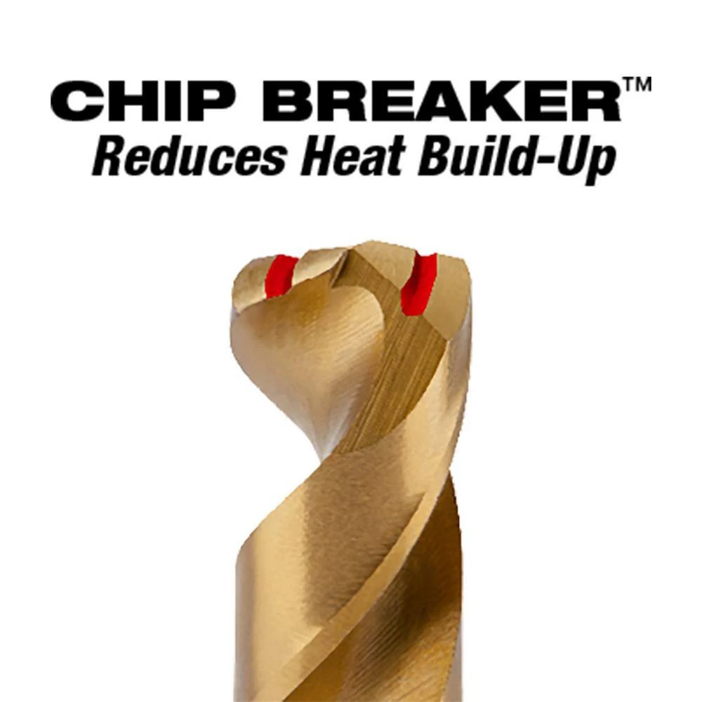 - Titanium coated dril bits for up to 5X life vs. black oxide drill bits