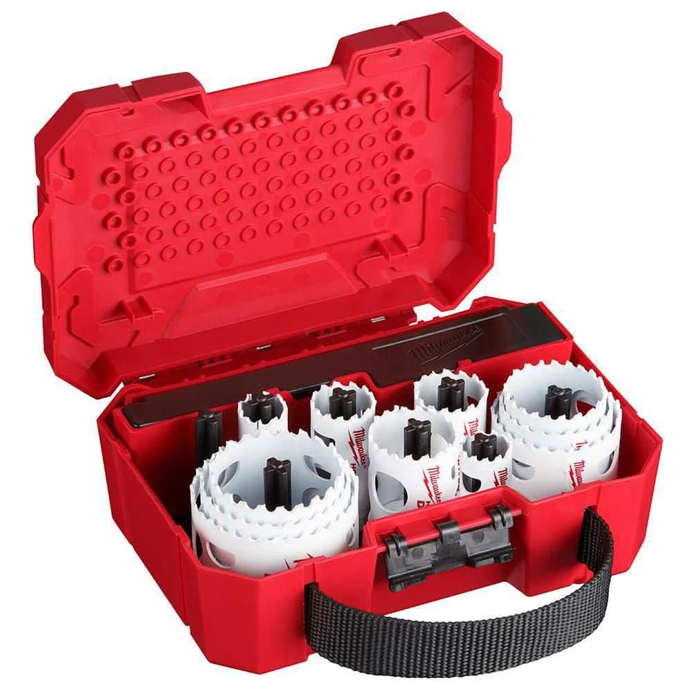 The MILWAUKEE General Purpose 16-Piece HOLE DOZER Bi-Metal Hole Saw Kit features a new 3.5 TPI tooth design that offers users the longest life in metal applications. These HOLE DOZER Bi-Metal Hole Saws feature the industry’s only Lifetime Tooth Break Warranty and can take on all general purpose applications, making them the most durable hole saws. Our ALL-ACCESS SLOTS solve the frustration of plug removal, making users more productive with less downtime between holes. The new slot design also gives users increased pilot visibility for accurate placement and faster chip ejection keeping their cut cool. HOLE DOZER Thermoset Coating allows for faster cutting and is optimized for cordless tools, delivering users 25% more holes per charge. Milwaukee HOLE DOZER Bi-Metal hole saws are proudly made in the USA. The included Milwaukee Hole Saw Case offers enhanced customization capability thanks to the interchangeable pegs. Store arbors, pilot bits and more in the removable accesory box or remove it to create more space for hole saw storage. Each Milwaukee Hole Saw Case boasts a reinforced grid design on both top and bottom plus heavy duty latches, allowing for hole saws to be securely stored within this durable, hard case design. The Milwaukee Small Hole Saw Case fits conveniently in Milwaukee Packout Organizers making transportation and storage a breeze.