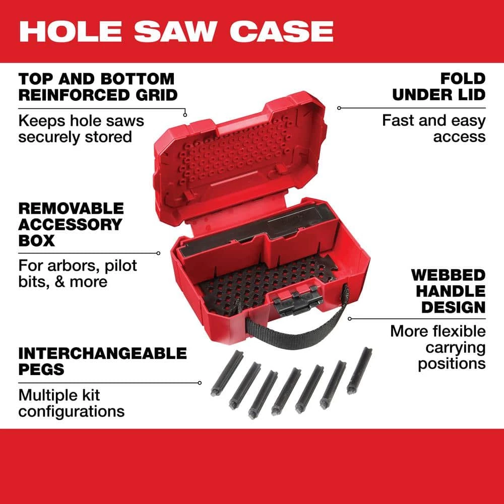 - Reinforced grids on top and bottom keep hole saws securely stored