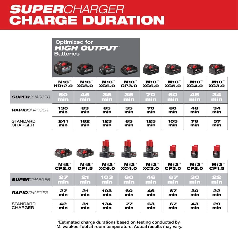 - Includes: 1 M18 and M12 super charger and 2 M18 High Output 3.0Ah batteries (48-11-1837)