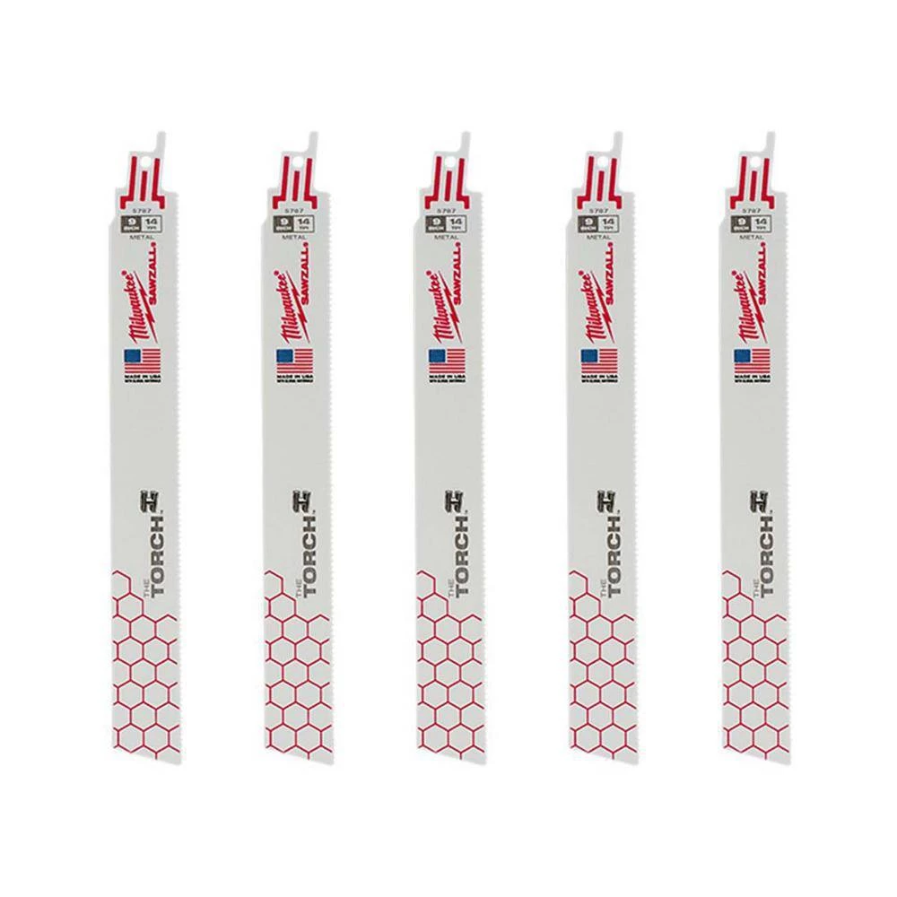 - SAWZALL blades included: three 6 in. 14 TPI metal THE TORCH SAWZALL blades, three 6 in. 24 TPI metal SAWZALL blades, two 6 in. 5 TPI SAWZALL blade, one 9 in. 18 TPI metal THE TORCH SAWZALL blades, one 9 in. 5 TPI wood THE AX SAWZALL blades, five 9 in. 14 TPI Torch medium metal cutting SAWZALL reciprocating saw blades