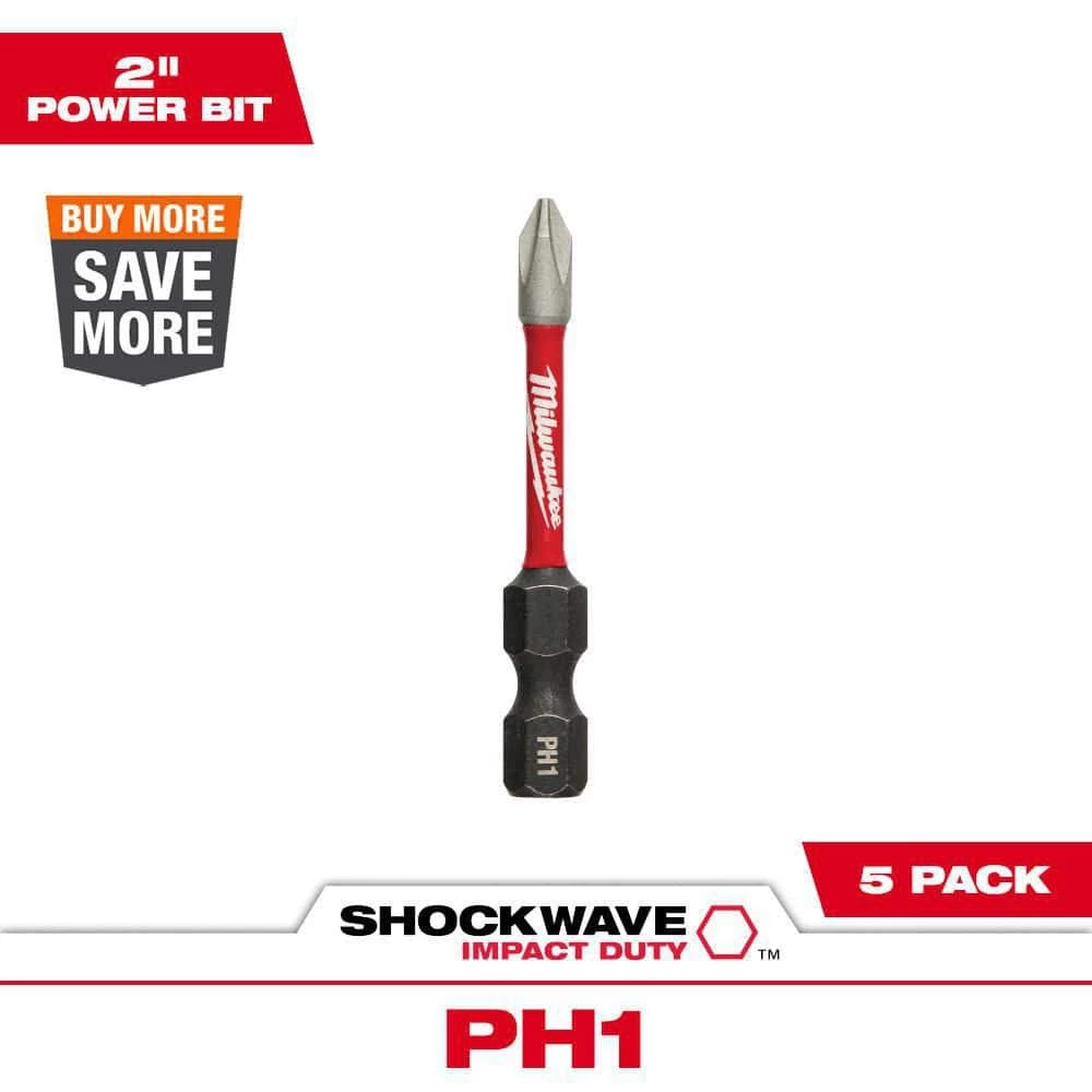 The MILWAUKEE SHOCKWAVE Phillips #1 2″ Impact Duty Steel Screwdriver Bits are engineered to be the Most Durable, Best Fitting driver bits on the market. The Phillips bits feature Wear Guard Tip for increased wear resistance which protects the fit over the life of the bit. The impact driver bits have and optimized Shockzone for each tip type and length of driver bit to absorb peak torque and prevent breaking. The Custom Alloy76 is customized and heat treated per tip type to extend the life of the driver but by up to 50X vs. competitive impact driver bits. The SHOCKWAVE Impact Duty driver bits are built to deliver extreme durability for the most demanding applications.
