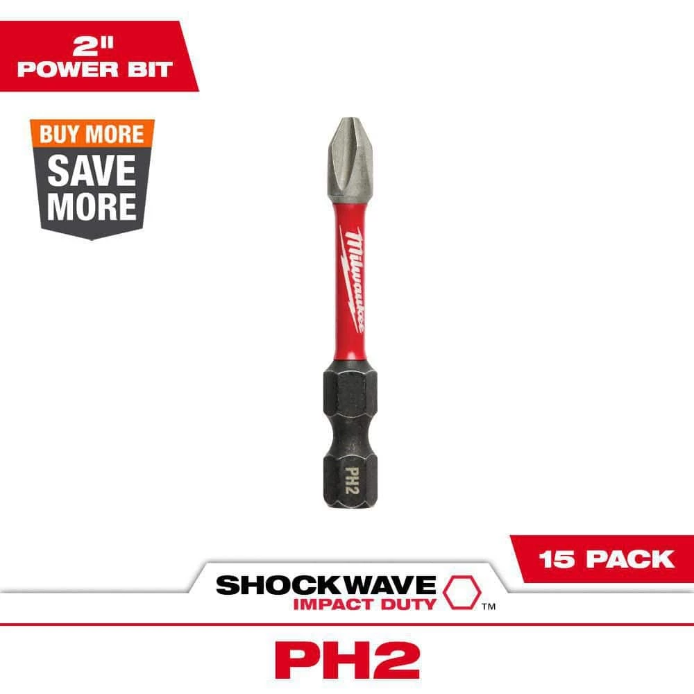 - Includes: (15) SHOCKWAVE 2″ PH2 IMPACT BIT