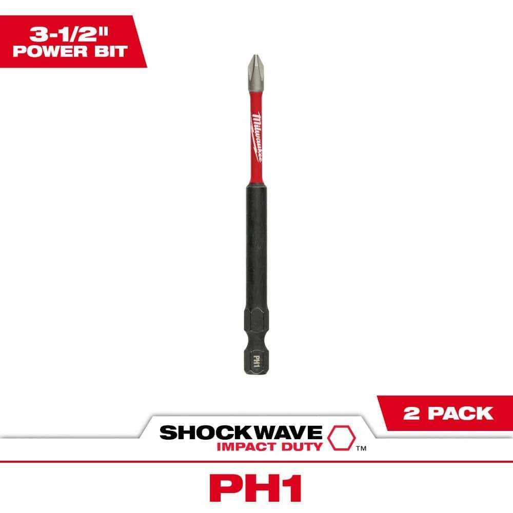 The MILWAUKEE SHOCKWAVE 3-1/2″ Phillips #1 Impact Duty Bit 2 Pack is engineered to be the most durable, best fitting driver bits on the market. The Phillips bits feature Wear Guard Tip for increased wear resistance, which protects the fit over the life of the bit. The impact driver bits have an optimized Shockzone for each tip type and length of driver bit to absorb peak torque and prevent breaking. The Custom Alloy76 Steel is customized and heat treated per tip type to extend the life of the driver but by up to 50X vs. competitive impact driver bits. The MILWAUKEE SHOCKWAVE Impact Duty driver bits are built to deliver users extreme durability for the most demanding applications.