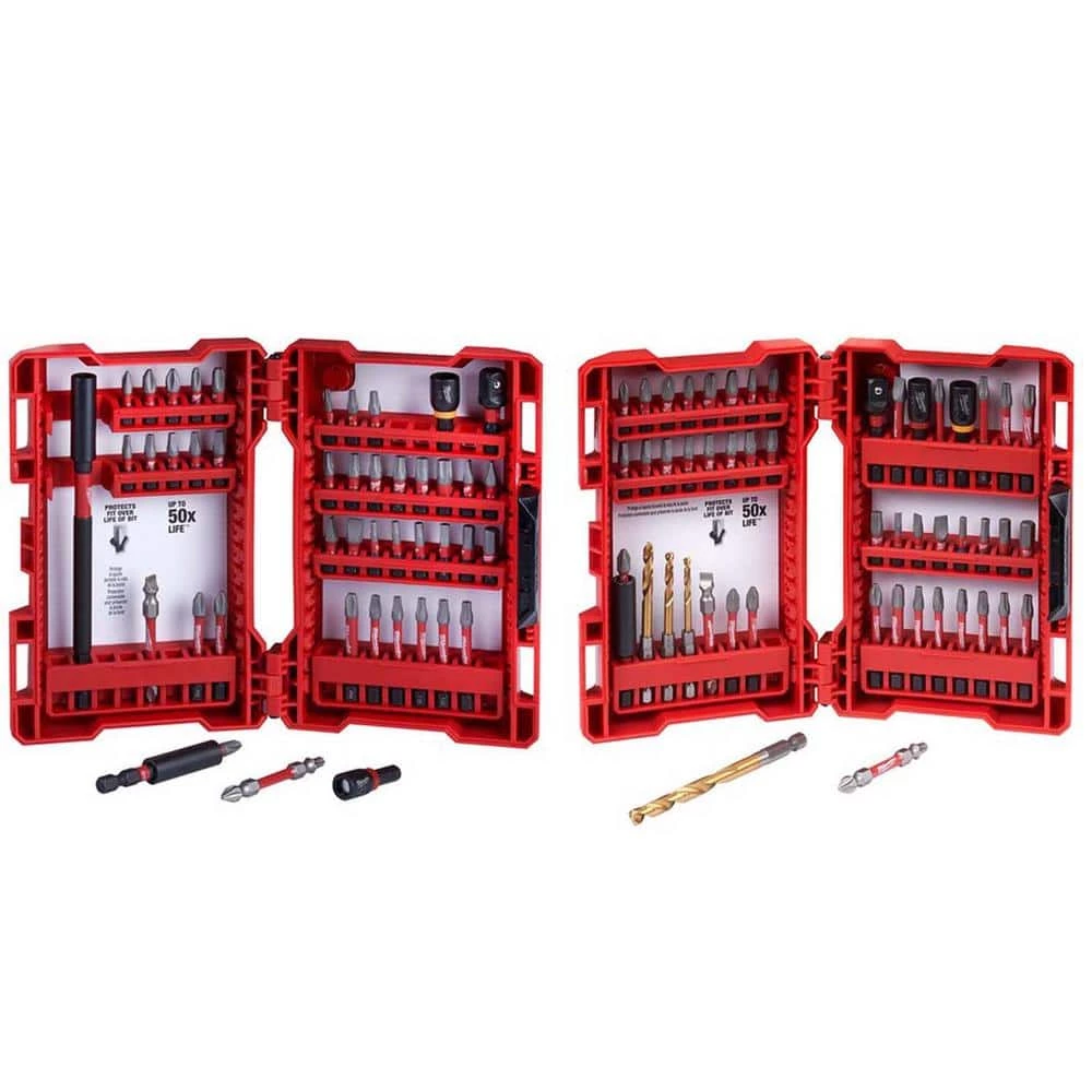 - Includes: 1 compact magnetic bit holder, one 6 in. magnetic bit holder, one 1/4 in. nut driver, one 5/16 in. nut driver, one 3/8 in. socket adapter, 2 double ended power bits, 1 PH1 insert bit, 3 PH2 insert bits, 1 PR2 insert bit, 1 PH3 insert bit, 1 SQ1 insert bit, 3 SQ2 insert bits, 1 SQ3 insert bit, 1 T10 insert bit, 1 T15 insert bit, 2 T20 insert bits, 2 T25 insert bits, 1 T27 insert bit, 1 T30 insert bit, 1 T40 insert bit, 1 slotted #8 insert bit, 2 slotted #10 insert bits, 1 slotted #12 insert bit, one 7/64 in. hex insert bit, one 1/8 in. hex insert bit, one 9/64 in. hex insert bit, one 5/32 in. hex insert bit, one 3/16 in. hex insert bit, one 1/4 in. hex insert bit, 2 PH2 power bits, 1 PH3 power bit, 2 SQ2 power bits, 1 T20 power bit, 2 T25 power bits