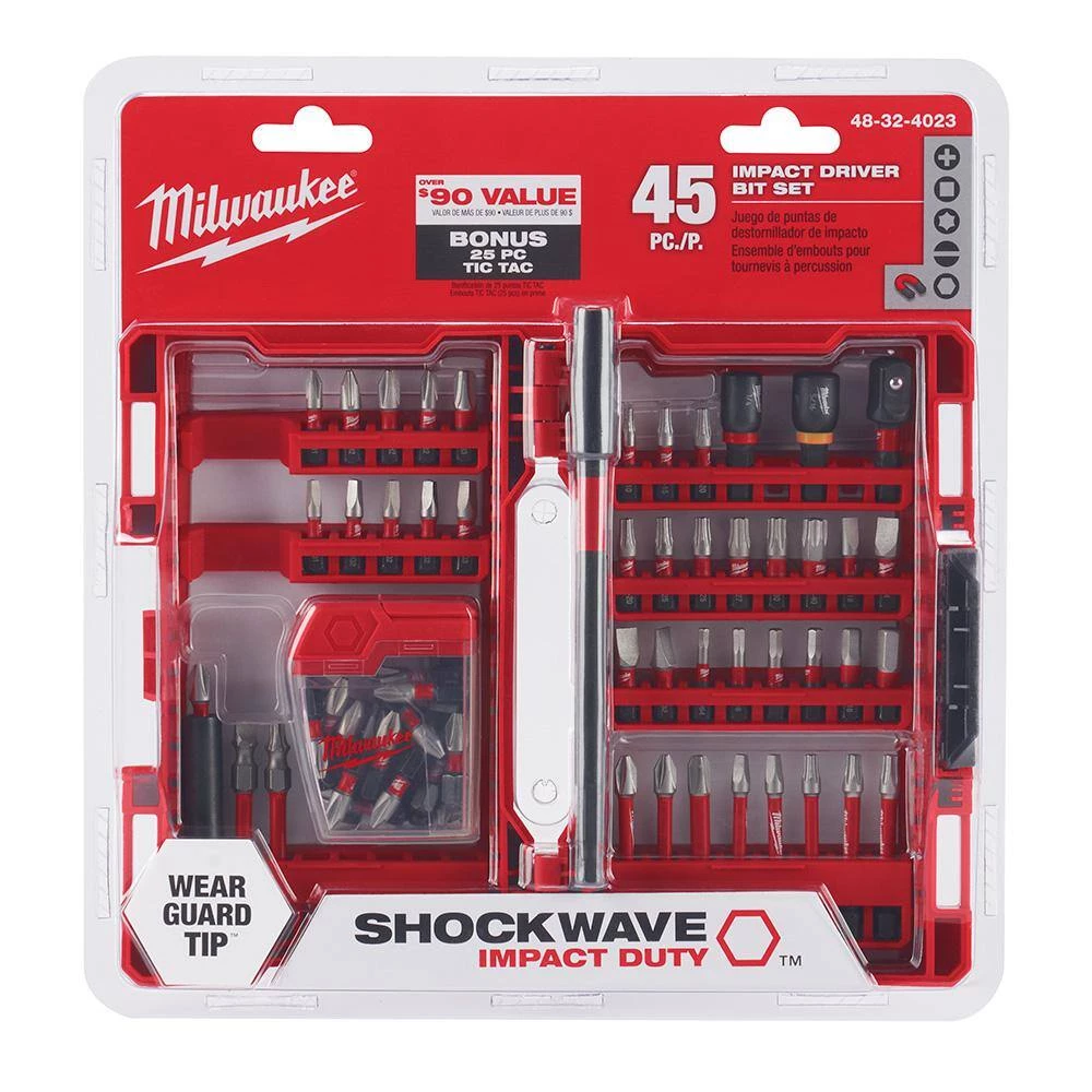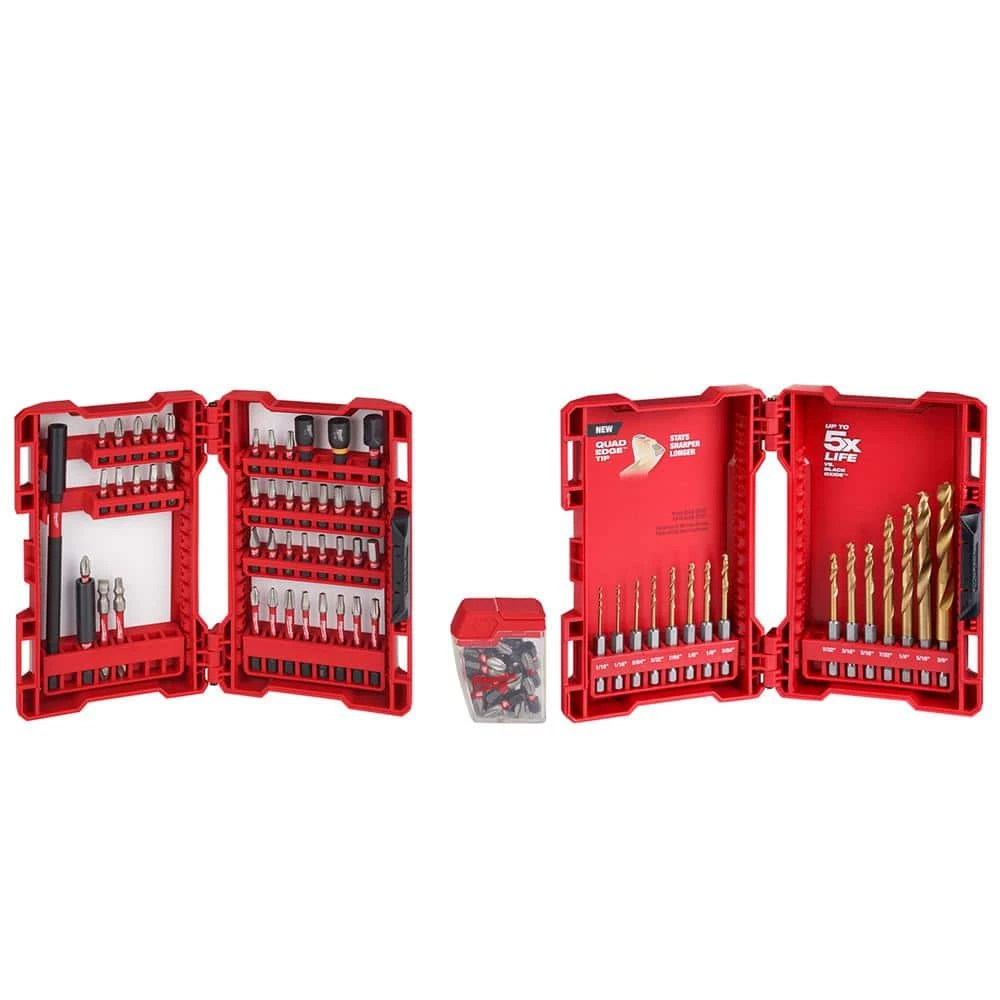 The Milwaukee Shockwave Impact Duty 70 Piece Driving Bit Set is engineered to be the Most Durable, Best Fitting driver bits on the market. The Wear Guard Tip delivers increased wear resistance which protects the impact bit’s fit over the life of the bit. The Shockzone is optimized for each tip type and length of driver bit in the set to absorb peak torque and prevent breaking. The driver bits have Custom Alloy76 for a customized steel and heat treatment per tip type to extend the life of the user’s driver bits, providing up to 50X life versus other impact driver bits on the market. The Milwaukee Shockwave Impact driver bits are built to provide users with extreme durability for the most demanding applications. The Milwaukee 15-Piece SHOCKWAVE RED HELIX Titanium Drill Bit Set is engineered for extreme durability and long life. The QUAD EDGE tip delivers a precision start and 4 cutting edges to create smaller chips for faster removal and less heat leading to longer bit life. Designed with a Variable Helix that includes an aggressive 35° helical angle, which ends at 15°, these tapered drill bits with RED HELIX provide Rapid Chip Removal limiting heat buildup to Stay Sharper Longer.