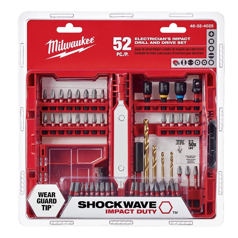 The MILWAUKEE SHOCKWAVE 52 Piece Electrician’s Driver Bit Set features bits engineered to be the Most Durable, Best Fitting driver bits on the market. The impact driver bits feature Wear Guard Tip that delivers increased wear resistance which protects the fit over the life of the bit. The Shockzone is optimized for for each tip type and length of driver bit to absorb peak torque and prevent breaking. The Milwaukee impact driver bit set features Custom Alloy76 steel, heat treated per tip type to extend the life of the driver bits, providing up to 50X life vs. competitive impact driver bits. SHOCKWAVE driver bits are built to deliver extreme durability for the most demanding applications.