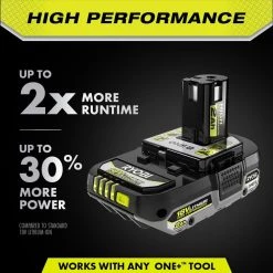 - 6.0 Ah LITHIUM+ HP High Capacity Battery: Provides 4X runtime compared to the ONE+ 1.3 Ah Compact Battery